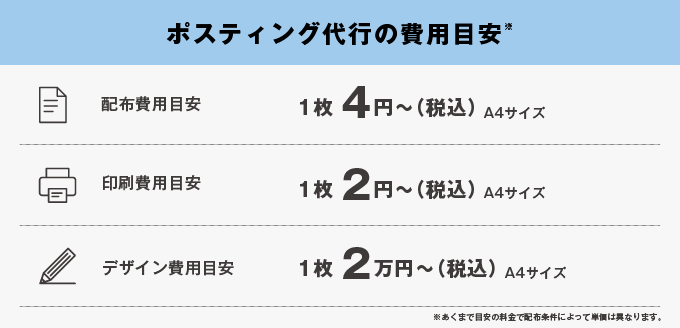 ※あくまで目安の料金で配布条件によって単価は異なります。